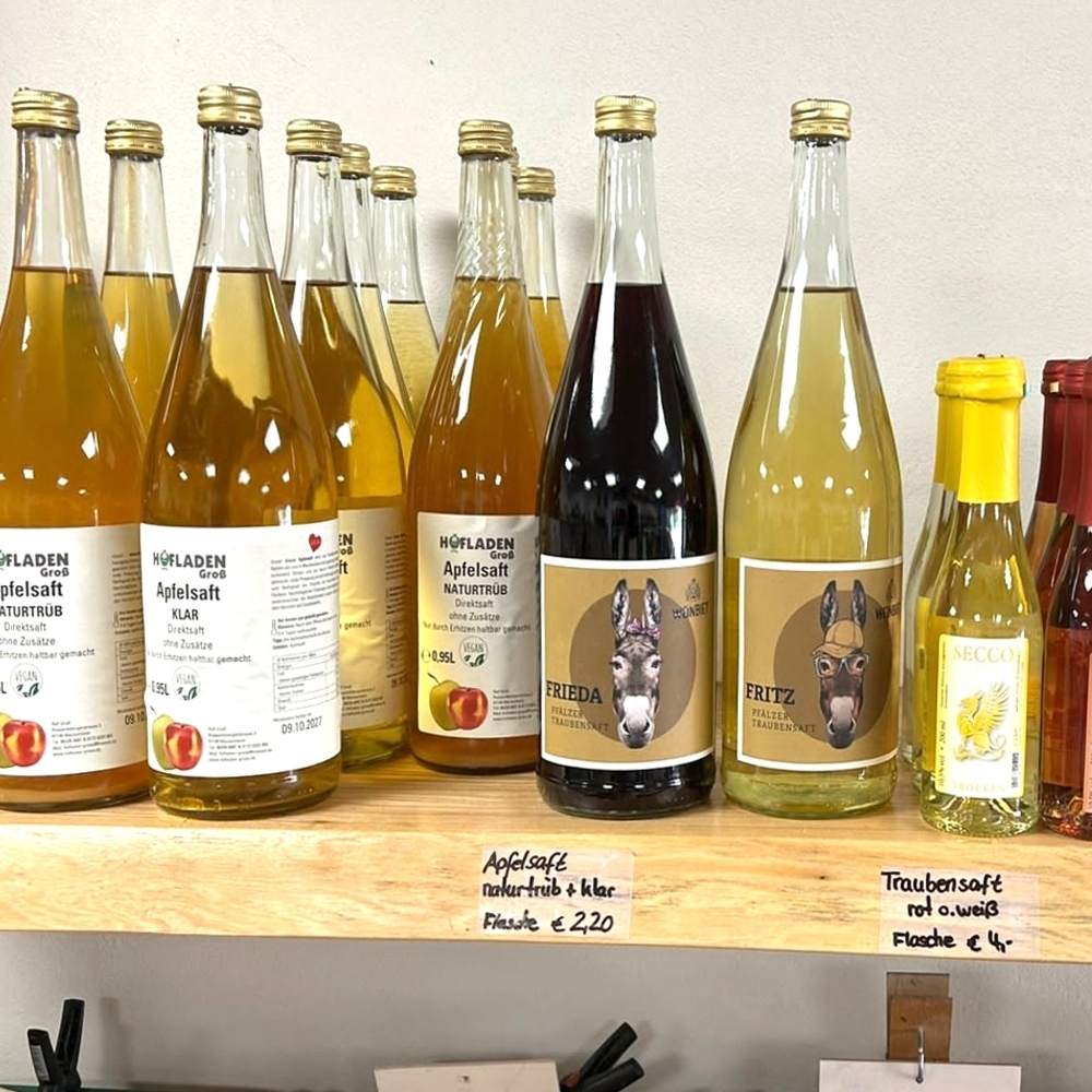 Wir lieben unsere Pfalz. Deshalb bieten wir Ihnen in unserem Hofladen eine vielfältige Auswahl an Produkten aus der Region an, auch aus eigenem Anbau.